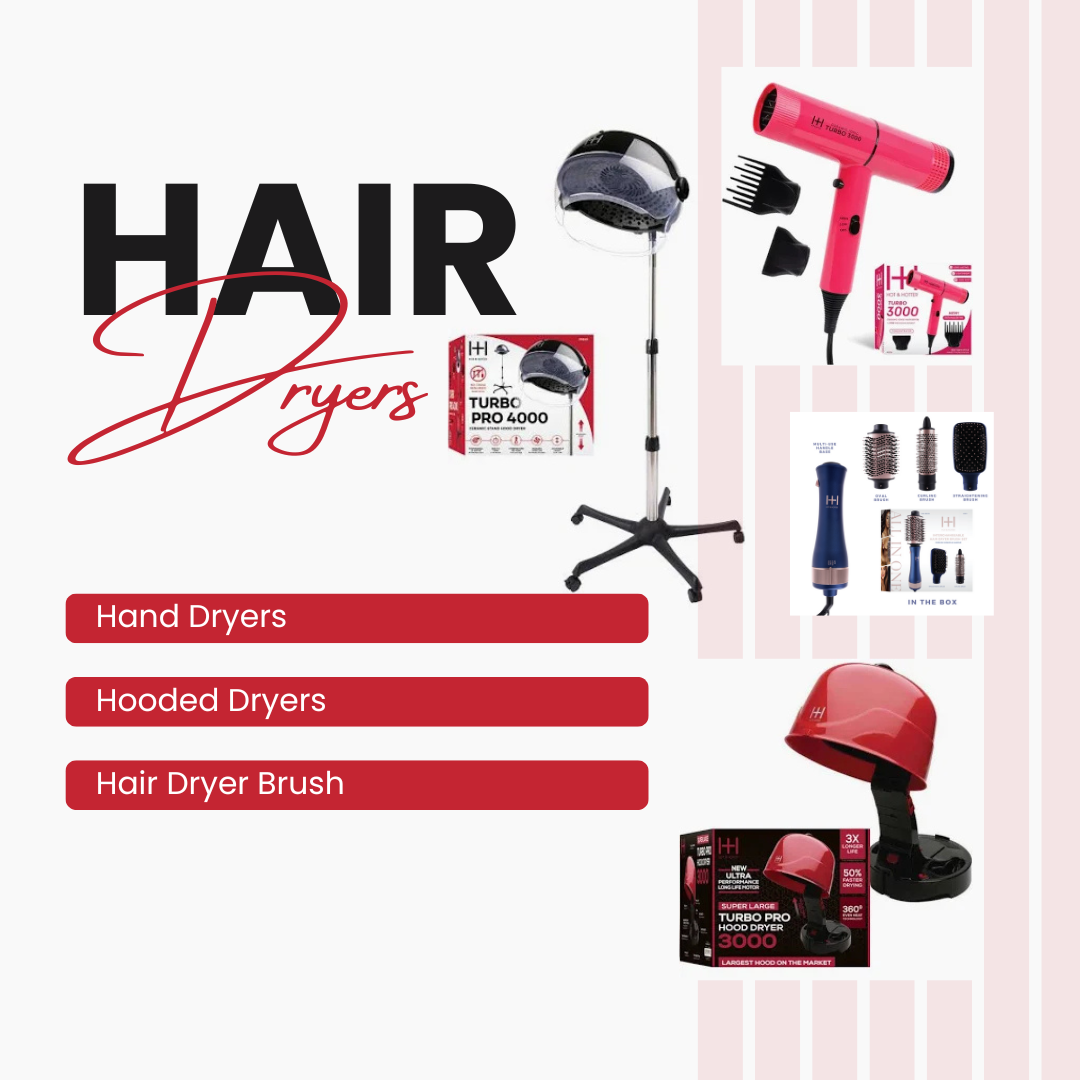 Hair dryer including handheld, hooded, standing and Handless dryer