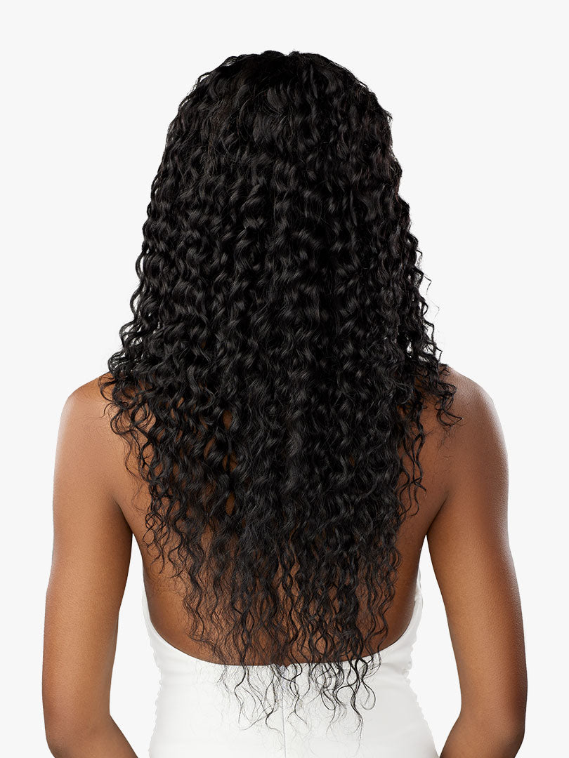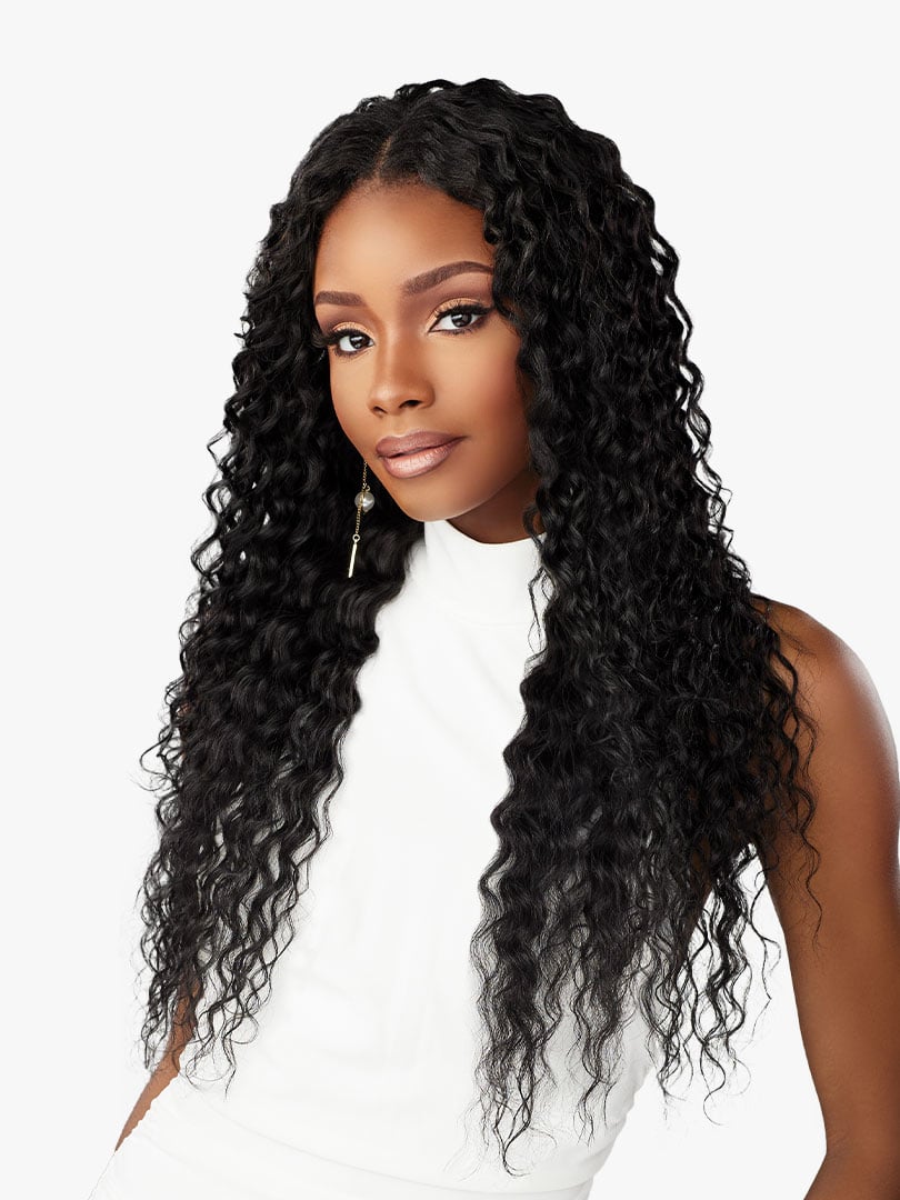 Long, French deep curls create effortless and voluminous curls.